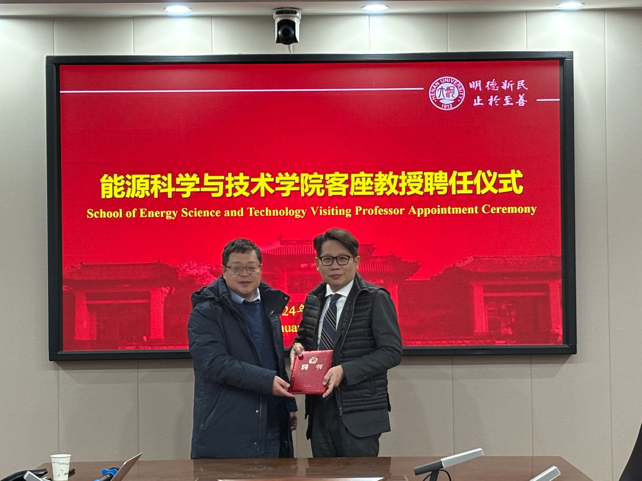报告会后李谦为Vissanu Meeyoo教授颁发聘书,聘任Vissanu Meeyoo教授为AirAV
