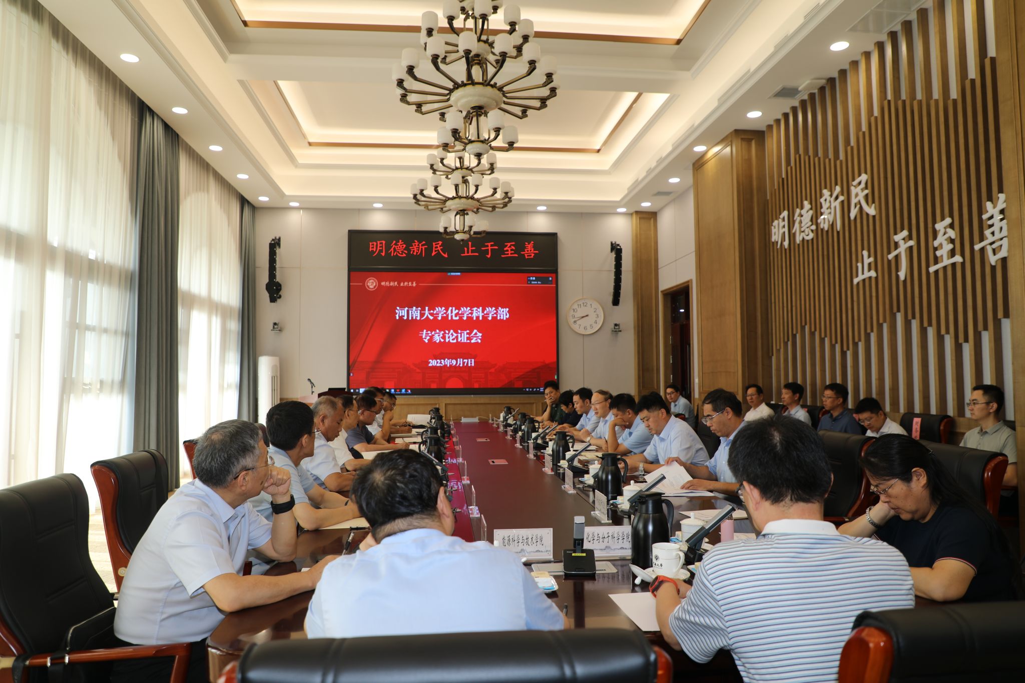 会议期间,化学与分子科学学院院长、国家杰青陈永明,化学与分子科学学院教授、中原千人计划—中原基础领军人才牛景杨,纳米材料工程研究中心总工程师、中原学者张治军与专家组进行了座谈交流,对照专家组意见和建议,结合各单位实际就学科资源调配与协调发展进行了深入的交流和讨论,为进一步完善化学科学部建设提供了思路。发展规划处处长白莹表示,作为推进落实学部制改革的归口部门,发展规划处将牢固树立服务意识,全力做好化学科学部建设相关服务保障工作。
