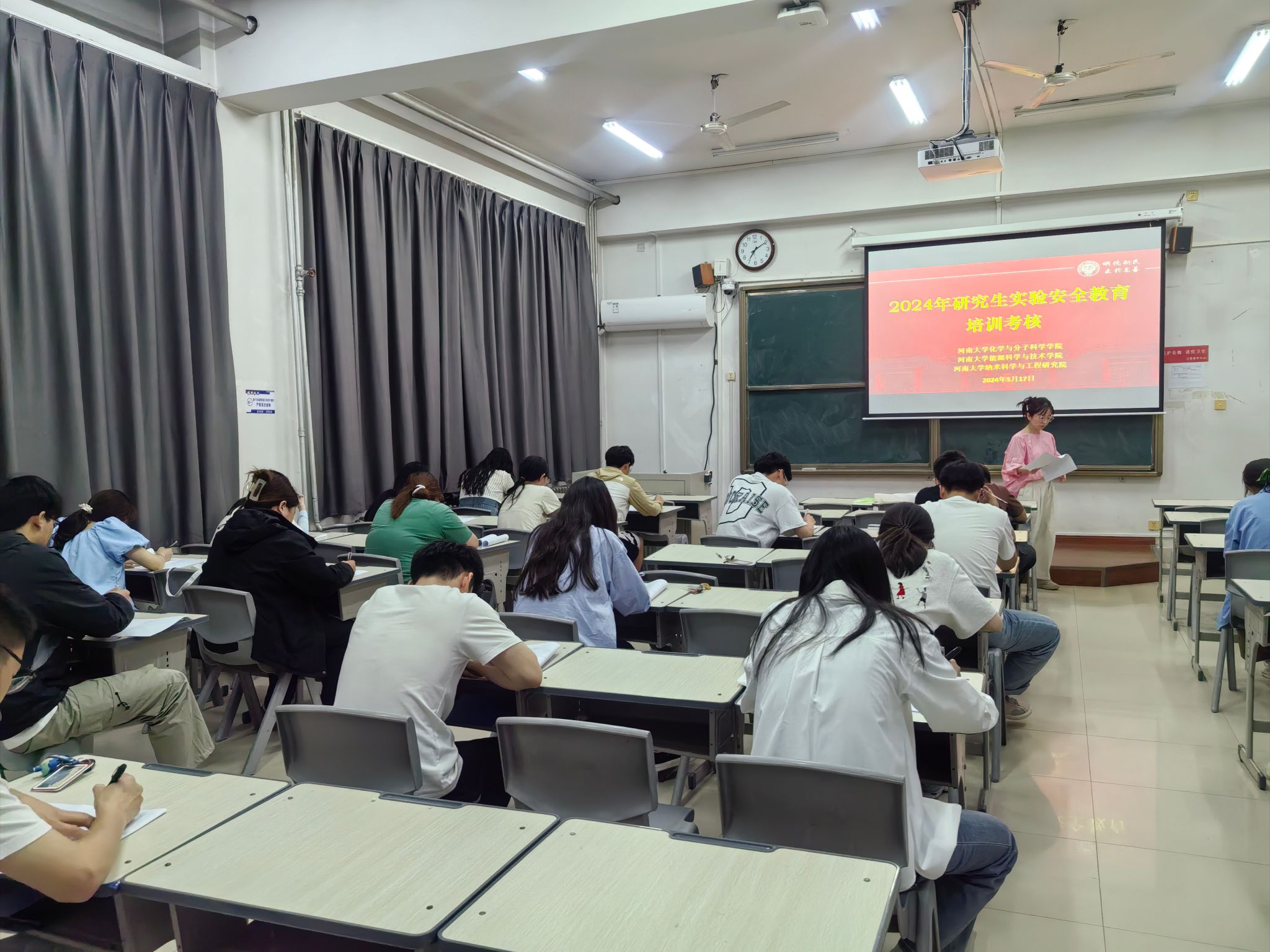 17晚19:00点,参加集中培训的500余名研究生参加了安全培训考核,其他参训师生参加线上安全培训考核。考核不合格者,暂停进入实验室。请假人员、考核不合格人员补考通过后,方可进入实验室开展工作。