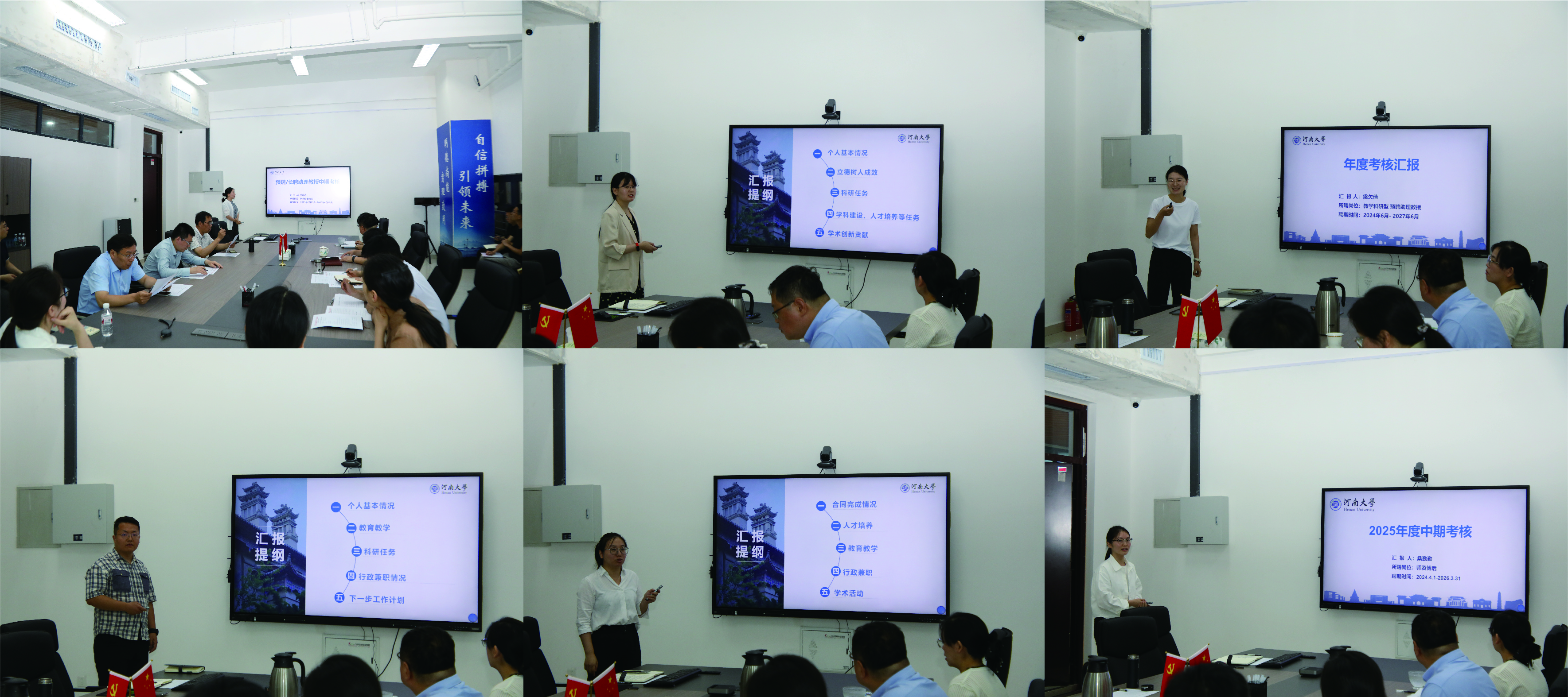 长聘助理教授孙认认,预聘助理教授潘珊珊、景俊萌、杨正山、梁欠倩,师资博士后桑勤勤等6位青年教师,分别围绕人才培养情况、科研任务完成情况、参与学科建设情况等方面进行详细汇报。与会专家聚焦青年教师的科研进展、发展方向、教育教学质量等方面对他们进行逐一点评,既肯定了他们在过去一年中取得的成绩,也指出了存在的问题与不足,并提出了具有针对性和建设性的意见建议,鼓励青年教师在科研上要勇于探索前沿领域,注重跨学科研究,提升科研成果的创新性与影响力。