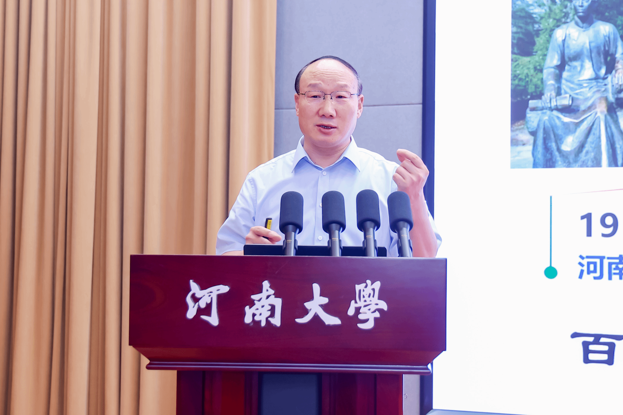 张锁江认真听取同学们的发言,耐心细致地解答了同学们提出的问题,对大家感兴趣的绿色化工发展、离子液体应用、智慧化工等方面内容给予专业指导,并作了题为《河大创新发展之路》的主旨报告。他简要介绍了河南大学百十余年办学历史,深入阐释了“研究型综合性国际化一流大学”办学定位的丰富内涵,分析了全球高等教育发展面临的新态势,并详细介绍了学校在新工科建设、“2+2+N”教育教学模式改革等方面的探索实践。他鼓励青年师生要主动面向世界科技前沿,主动对接国家战略,立足未来发展需求,将基础研究与应用研究相结合,做高水平的科研;要树立大理想、胸怀大格局,在深耕专业领域的同时,注重团队协作,拓展国际视野,努力成长为兼具专业深度与跨学科交叉能力的复合型人才;青年学子要充分用好求学宝贵时光,打好语言基础、提升计算机技能等,不断锤炼创新思维和实践能力,以内在主观能动的“确定性”应对外部环境条件的“不确定性”,以高水平综合素养应对人工智能带来的一切挑战。最后,张锁江祝愿同学们在“每天超越自己一点”的蓄势中成就人生的光明前程!